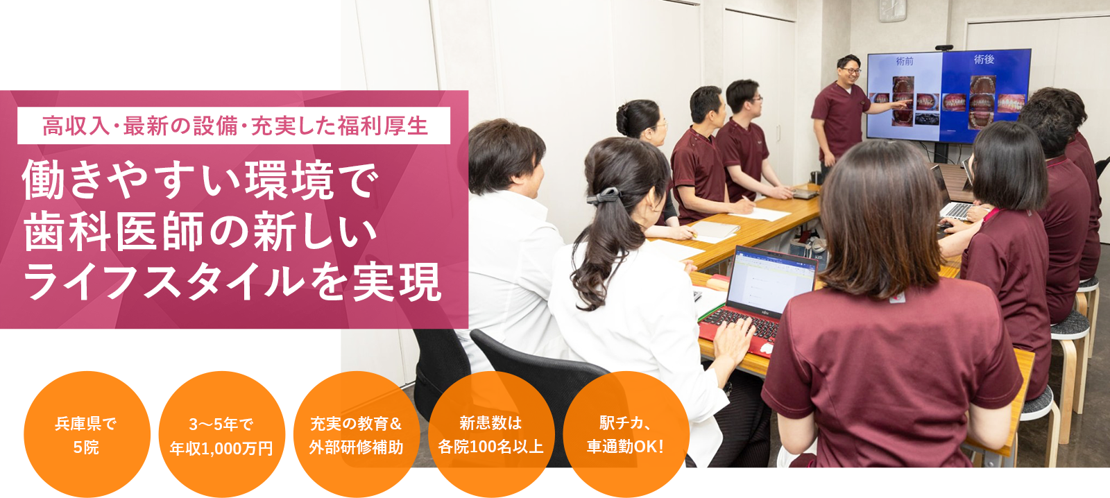 また、勤務3年目(目安)に、希望者にはネオキャップ・ビムラー矯正の年間コースも受講も可能です(受講費は100%法人負担)。